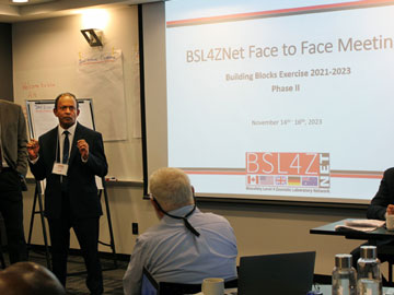 En y repensant, je suis extrêmement fier de nos initiatives scientifiques axées sur la collaboration. Le travail de collaboration que nous faisons à l’ACIA nous rappelle que nous n'avons pas le monopole des bonnes idées et que nous pouvons toujours tirer profit de la collaboration avec nos partenaires, tant nationaux qu'internationaux. Nous avons réalisé des travaux très importants grâce à nos collaborations internationales, notamment avec le Réseau de laboratoires de niveau de biosécurité 4 pour les zoonoses, qui regroupe 17 laboratoires de santé animale et humaine du Canada, des États-Unis, de l'Australie, du Royaume-Uni et de l'Allemagne dans le but d'améliorer concrètement notre préparation face aux maladies transfrontalières. Les partenariats fiables que nous avons pu établir avec ces laboratoires internationaux reconnus sont encore plus précieux dans le contexte de sécurité renforcé avec lequel nous devons aujourd'hui composer.