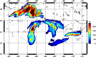 Analyse physique sur 2 km des Grands Lacs et prévisions mises à jour toutes les douze heures