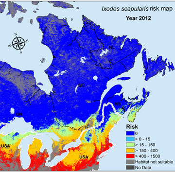The team uses special images taken from satellites to find these at-risk locations. “By combining information on habitat and climatic conditions, the geomatics team can create risk maps for various infectious diseases. We use these maps to help public health professionals conduct their work,” says Ms. Brazeau.