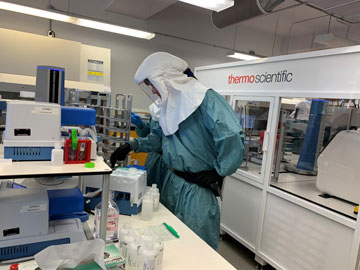 The NML has supported testing efforts from the earliest days of COVID-19 and even brought their mobile labs to where they were needed. Staff spent two months testing repatriated Canadian citizens using mobile truck laboratories to provide fast on-site testing in early 2020. These mobile labs were formerly used at the Vancouver Olympics and other high-profile events. Some of them are built for high containment pathogens and typically are used to test for biological threats. Earlier in the pandemic, the surge sites were also activated to help process samples collected from travellers arriving into Canada at land ports of entry.